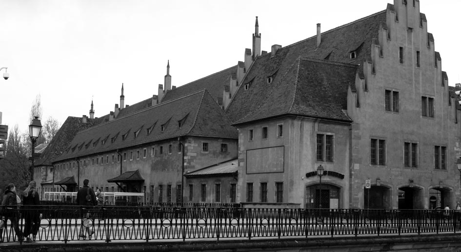 En 1497, pendant cette foire de la St-Jean, un incendie éclata dans l’auberge « Zum Spanbett ». Un bon nombre de personnes n’eurent d’autre issue pour échapper aux flammes, que de sauter dans la rivière. D’une des fenêtres étroites, par laquelle l’on pût encore se sauver, se glissa alors un moine corpulent, mais celui-ci, arrêté par son embonpoint, causa la mort de 26 personnes. En 1507, cette auberge fût reconstruite avec les fonds de « l’Oeuvre Notre-Dame ». Avec le développement de l’activité commerciale, de nombreux aménagements et agrandissements furent progressivement réalisés, et en particulier en 1751, sous la conduite de l’Architecte Municipal « Boudhors ». Suite au départ de la douane, en 1803, en raison du déplacement du trafic vers la zone portuaire, le nouveau bâtiment, appelé désormais « Ancienne Douane », connut diverses utilisations, comme le Marché aux Vins jusqu’en 1842. Dès 1853, l’édifice fût attribué à l’administration des contributions indirectes, qui y installa un magasin de tabac en feuilles. En 1897, un nouvel aménagement en fît le Marché aux Poissons des Strasbourgeois.